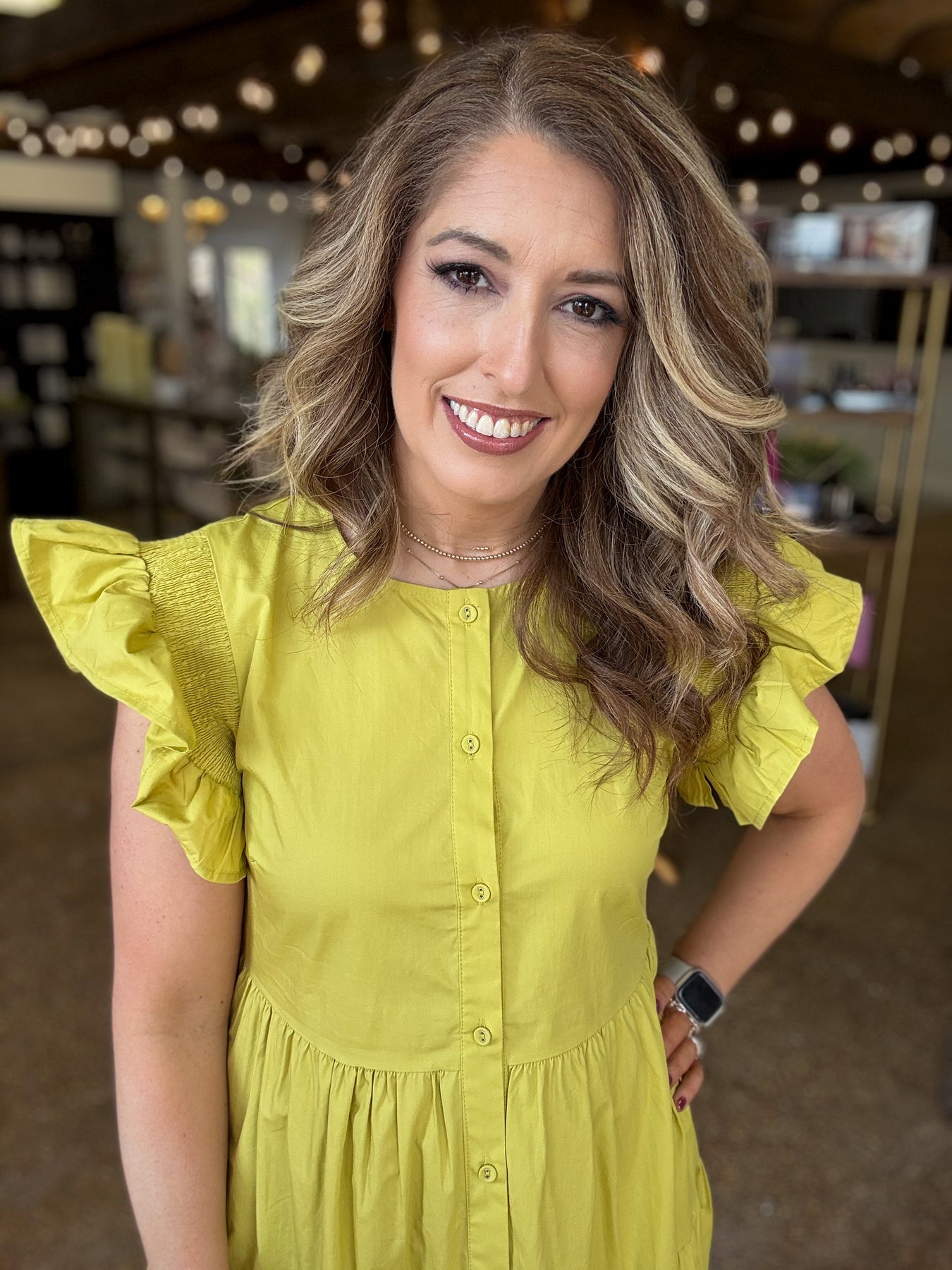 This charming midi dress brings effortless style with its crisp poplin fabric and playful tiered silhouette. The front button-down design offers easy dressing, while delightfully smocked ruffle sleeves add a touch of whimsy and movement. Perfect for creating a polished yet fun look that transitions seamlessly from day to night.